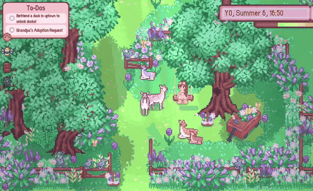 Your ranch is just the beginning. Venture out with your animals into maze-like forests, tropical beaches, serene fields, and more to discover wild creatures across diverse landscapes. Discover and befriend wild animals as you explore, and help them find loving homes back in Llama Town. Adventure and heartfelt discovery await around every corner!